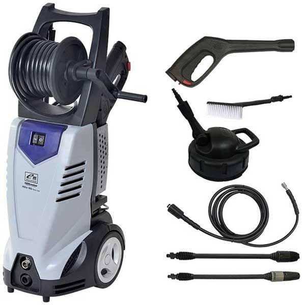 Obim isporuke – pištolj za vodu visokog pritiska, crevo viskog pritiska, ručka za crevo, podesiva mlaznica, ugrađen rezervoar za deterdžent, turbo mlaznica, čistač poda i fiksna četka.
