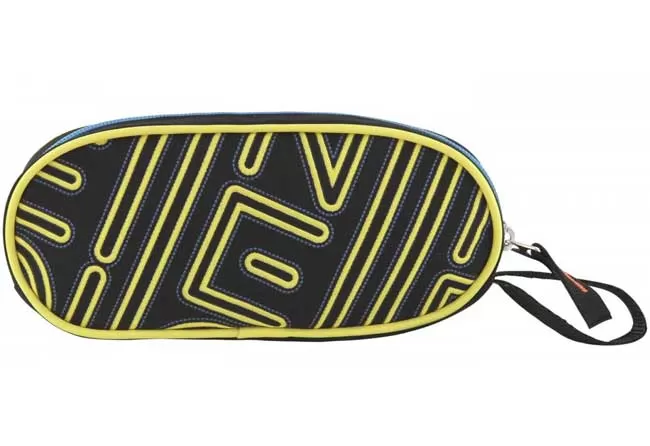 Pernica polukružnog oblika sa jednim rajsferšlusom. Kvalitetne izrade, izdržljiva, sa dovoljno mesta da se spakuje školski pribor. 21x9x4cm.