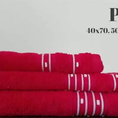 Set pamučnih peškira različitih dimenzija. Manji peškir je veličine 40x70cm, srednji 50x90cm dok su dimenzije najvećeg 70x130cm.