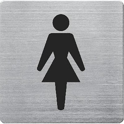 Aluminijumski samolepljivi piktogram za ženski toalet može se lepiti na zid, staklo, vrata... Dimenzije: 90x90x1 mm.