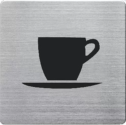 Aluminijumski samolepljivi piktogram za kafanu može se lepiti na zid, staklo, vrata... Dimenzije: 90x90x1 mm.