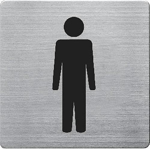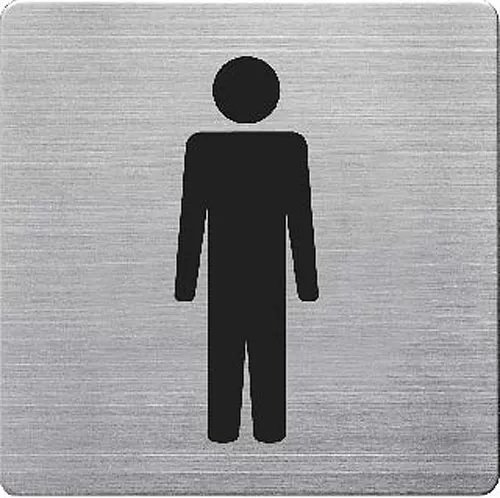 Aluminijumski samolepljivi piktogram za muški toalet može se lepiti na zid, staklo, vrata... Dimenzije: 90x90x1 mm.