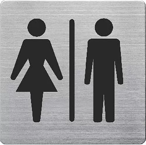 Aluminijumski samolepljivi piktogram za toalet može se lepiti na zid, staklo, vrata... Dimenzije: 90x90x1 mm.