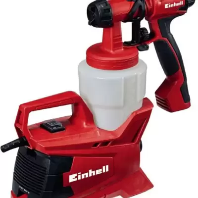 Pištolj za farbanje sa izdvojenim kompresorom. Snaga aparata je 600W a protok maksimalnih 1 l/min. Za tečnosti na bazi vode.