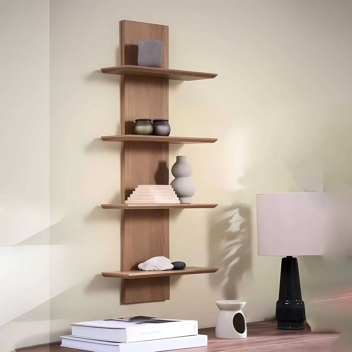 Elegantna i funkcionalna zidna polica BORUM predstavlja savršeno rešenje za organizaciju i dekoraciju vašeg prostora. Policu odlikuju: Moderan minimalistički dizajn koji se uklapa u svaki enterijer, 4 prostrane police za odlaganje knjiga, dekoracija