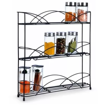 Metalna polica sa tri nivoa, stabilna i čvrsta. Može se koristiti za različite namene, u kuhinji za odlaganje posuda sa začinima, za odlaganje kozmetike ili izlaganje dekorativnih predmeta.