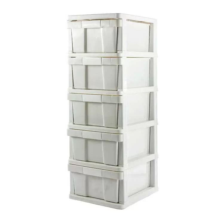 Višenamenska plastična polica sa 5 velikih fioka Bela