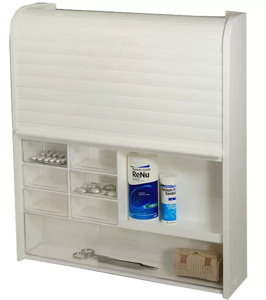 Plastični zidni ormarić za kupatilo sa rolo vratima i 14 fiokica 2409201