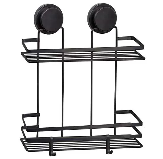 Polica za šampone i pribor za tuširanje, sa dva nivoa. Polica se postavlja bez bušenja pločica sa specijalnim samolepljivim kukicama.