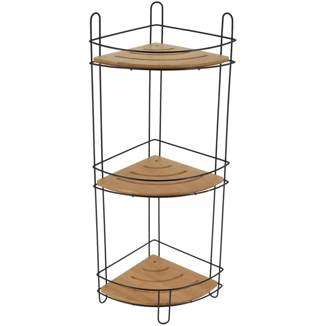 Tendance Trostruka Ugaona Polica 61,5x27x20 Cm Mdf/bambus Crna