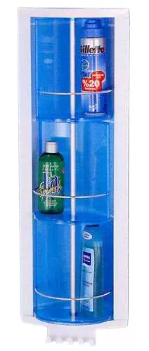 Ugaona polica za kupatilo sa tri rotirajuća odeljka bela-providno plava 24S0223
