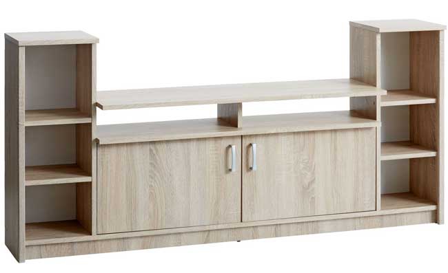 TV polica savremenog i veoma praktičnog dizajna, sa puno odeljaka za različite stvari. Izrađena je od HDF ploča, medijapana i melamina.