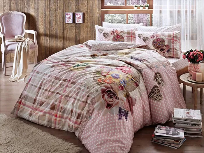 TAC Pamučna dupla posteljina Livia V1 Pembe