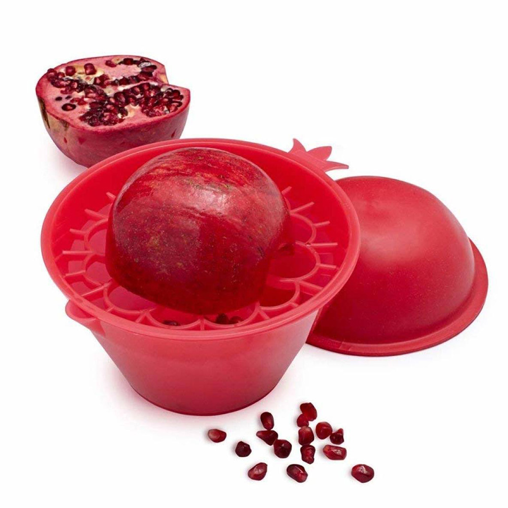 Jednostavan za upotrebu: presecite nar na pola, stavite jednu polovinu na rešetku i pokrijte voće poklopcem, snažno tapkajte velikom teškom kašikom i semenke će ispasti u posudu.