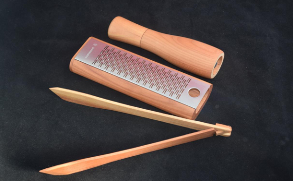 Rende za sir za rendanje parmezana i tvrdog sira. Od drveta trešnje, prohromski deo se skida što ga čini veoma praktičnim za održavanje.