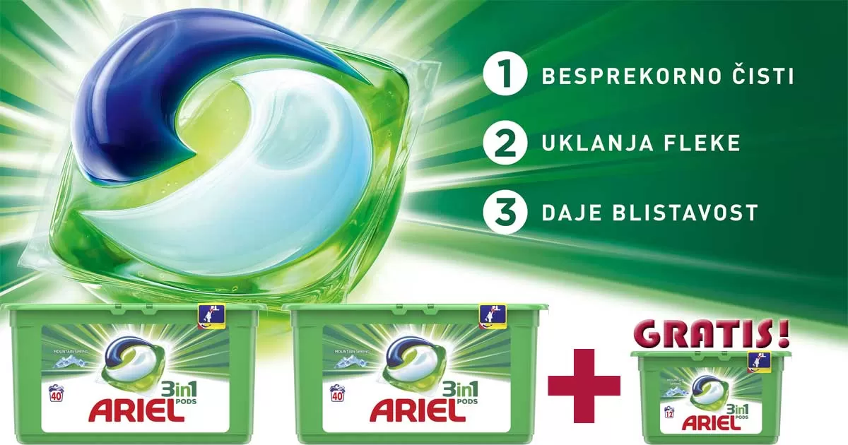 Ariel 3in1 Pods Regular Kapsule praška za pranje veša 2+1 gratis 92kom.