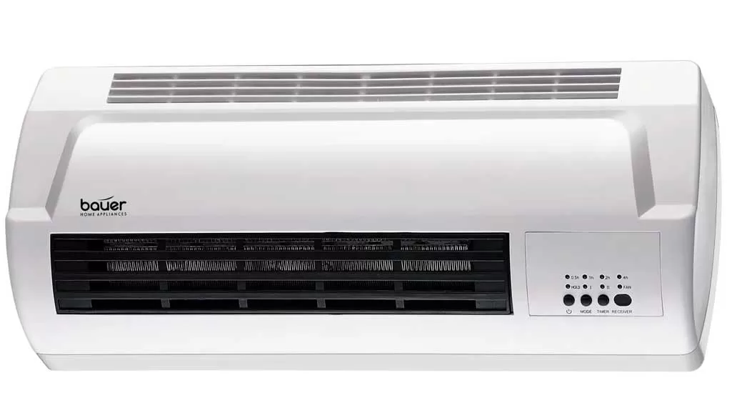 PTC keramički grejni element. Od opcija nudi: ventilator, topao vazduh, vruć vazduh, daljinski upravljač, zaštitu od pregrevanja i tajmer.