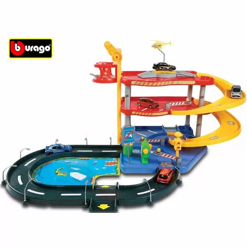 Uz ovaj kvalitetan komplet u kome se nalaze garaža u 3 nivoa, 2 rampe, lift za automobile, put, prepreke, auto perionica, benzinska pumpa, 2 Bburago autića, Vaše dete će provesti sate zabavljajući se, razvijajući maštu i kreativnost.