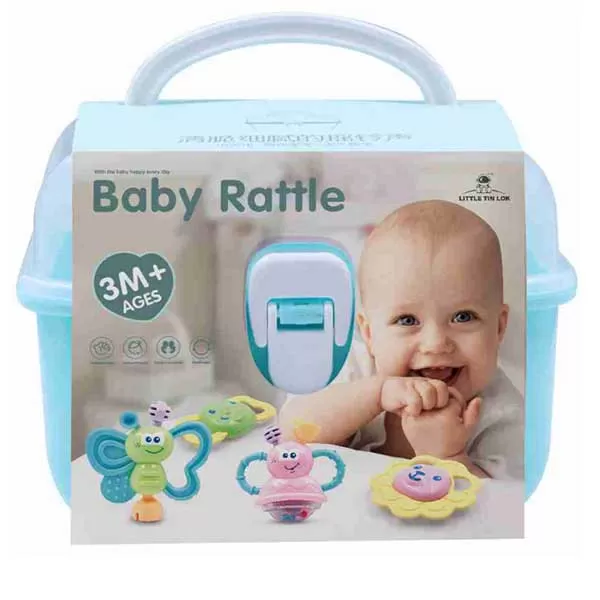 Komplet sadrži 8 zvečki različitih oblika izrađenih od gume i plastike u prijatnim pastelnim bojama. Pakovanje u plastičnom koferčiću sa ručkom.