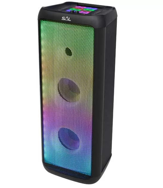 Dvosistemska bas refleks zvučna kutija sa punjivom baterijom, LED svetlosnim efektima i DJ kontrolnom pločom sa 64 zvučna efekta.