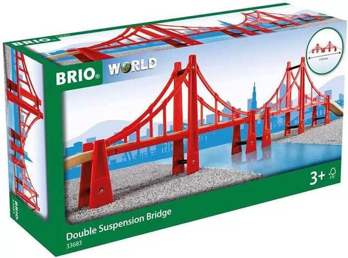 BRIO igračka Dupli viseći most za prugu odličan je dodatak za pruge iz BRIO World setova za igru. Kompatibilan je sa BRIO vozićima i vozilima. Kada se sklopi, dimenzije su mu 115x6x19cm.