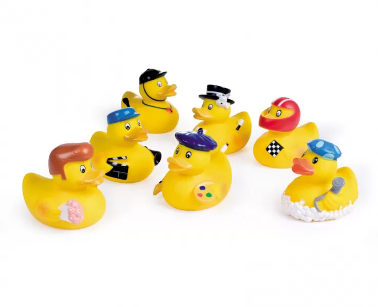 Gumena patka za vodu za bebe uzrasta 3m+. Na stisak zaskviči. Napravljena od sigurnih materijala.