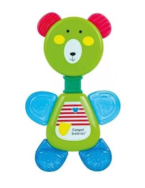 Canpol Glodalica-Zvečka Meda sa teksturom, koja nežno masira desni i tako pomaže izbijanje zubića. Ujedno je i zvečkica