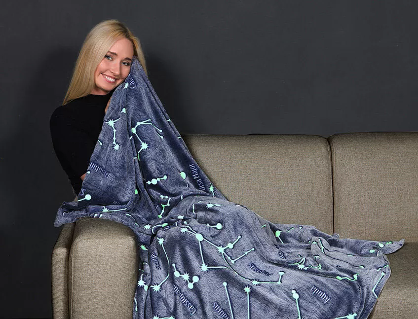 Ćebe koje svetli u mraku sa motivima sazvežđa Izuzetno je toplo jer apsorbuje sunčevu svetlost tokom dana i zatim svetli u mraku