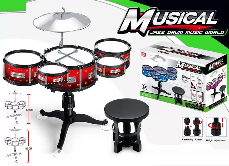 Set sadrži: 5 doboša, činelu, bubnjarske palice i stoličicu