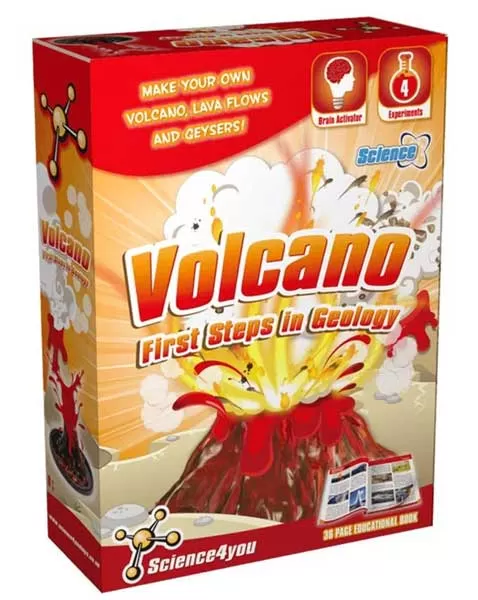 Pakovanje sadrži: modul vulkana, zaštitne naočare, boju, epruvete, mešalicu i edukativnu knjižicu – uputstvo (36 str)