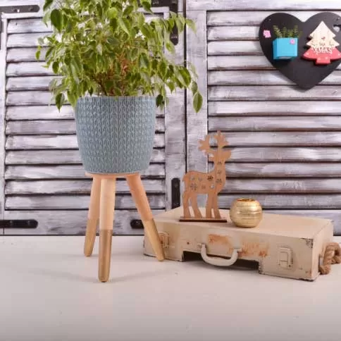 Drveni stalak sa plavom saksijom otvora 20 cm