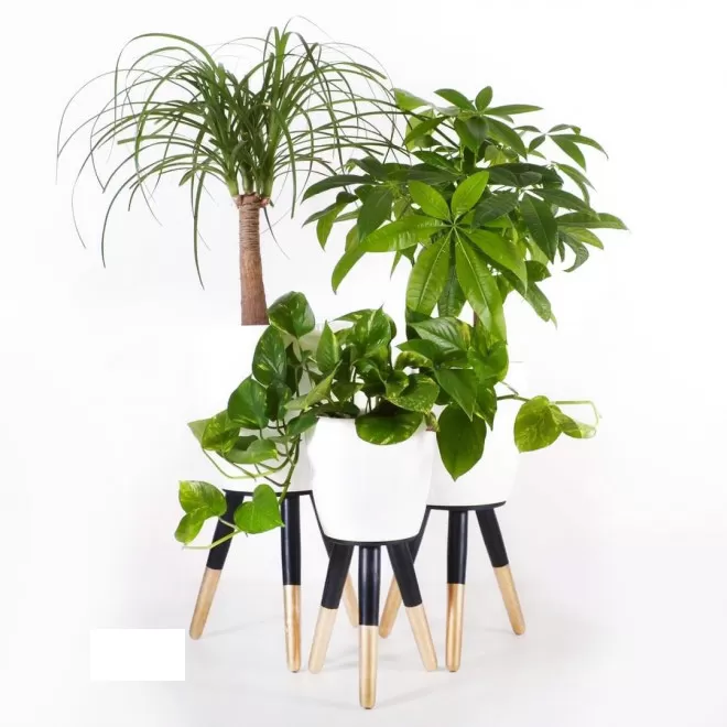 Drveni stalak zlatno-crni sa belom saksijom 20 cm