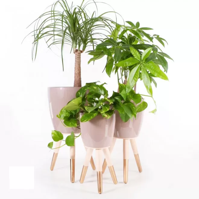 Drveni zlatno-beli stalak sa bež saksijom 30cm
