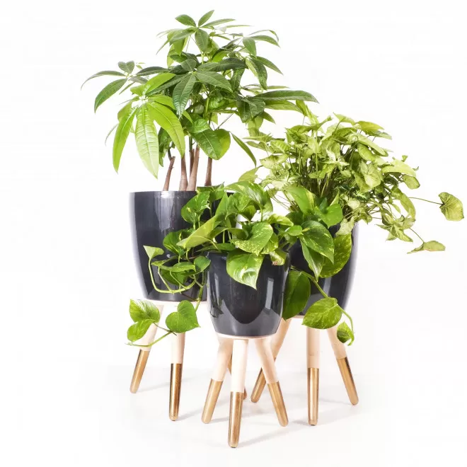 Drveni zlatno-beli stalak sa crnom saksijom 20cm