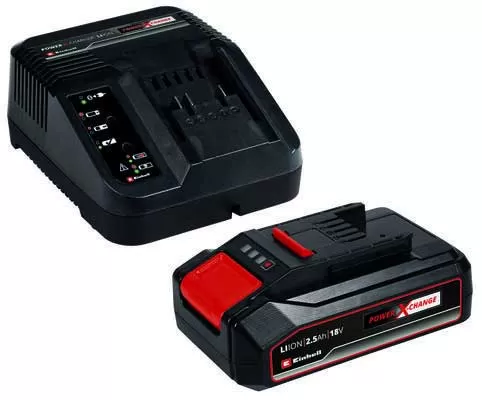 Einhell Power X-Change komplet sadrži punjač i bateriju od 18Vm kapaciteta 2.5Ah. Može se koristiti za napajanje svih alata iz Einhell Power X-Change serije.