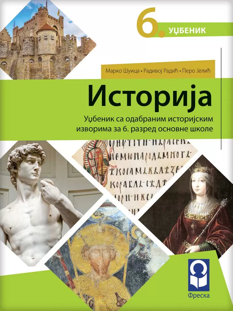 Istorija za šesti razred osnovne škole, revidirano izdanje. Autori: Marko Šuica, Radivoj Radić, Pero Jelić. Izdavač: Freska.