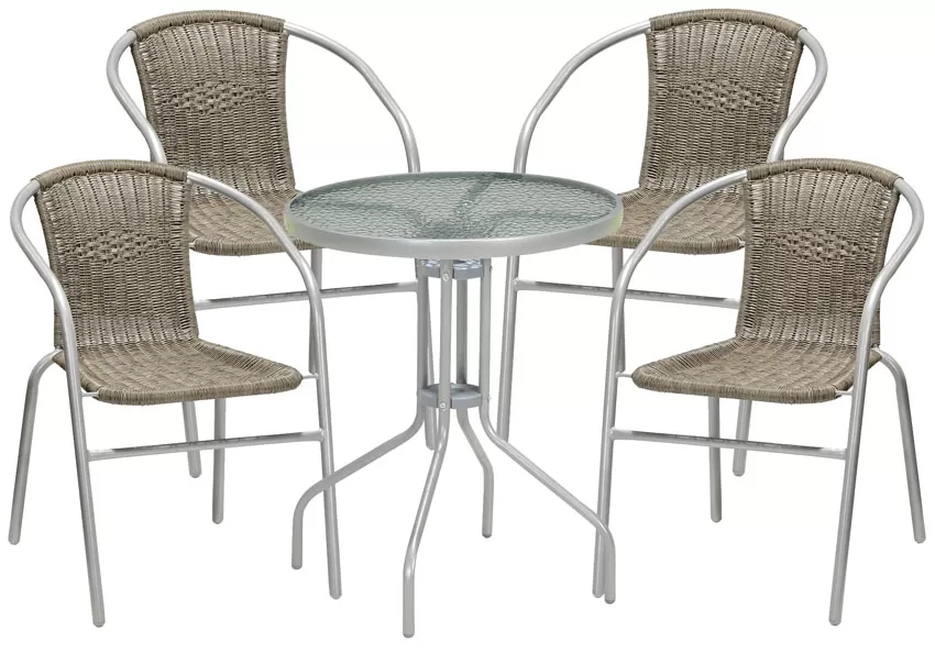 Garnitura od Ratana PE - 4 Stolice + Sto Flippa Glass Light