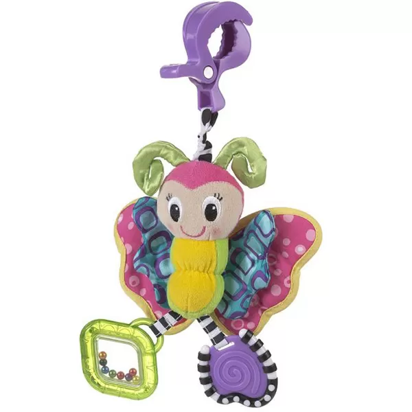 Veseli leptir kao kombinacija zvečke, glodalice ili otkrivalice raznih tekstura i materijala - pliš, pamuk, guma. Leptir je sa zakačaljkom.