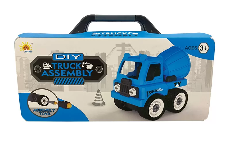 Kamion mikser u koferu sadrži odlično napravljene plastične komponente koje je moguće rastaviti i ponovo sastaviti. Uključena su dva mehanička odvijača. Pogodno od 3. godine starosti.