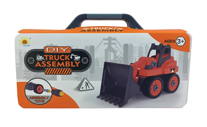 Utovarivač u koferu sadrži odlično napravljene plastične komponente koje je moguće rastaviti i ponovo sastaviti. Uključena su dva mehanička odvijača. Pogodno od 3. godine starosti.