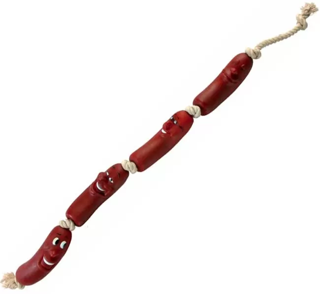 Igračka za pse u obliku kobasica na konopcu. Izrađena je od vinila i ne proizvodi nikakav zvuk što je čini pogodnom i za osetljive pse.