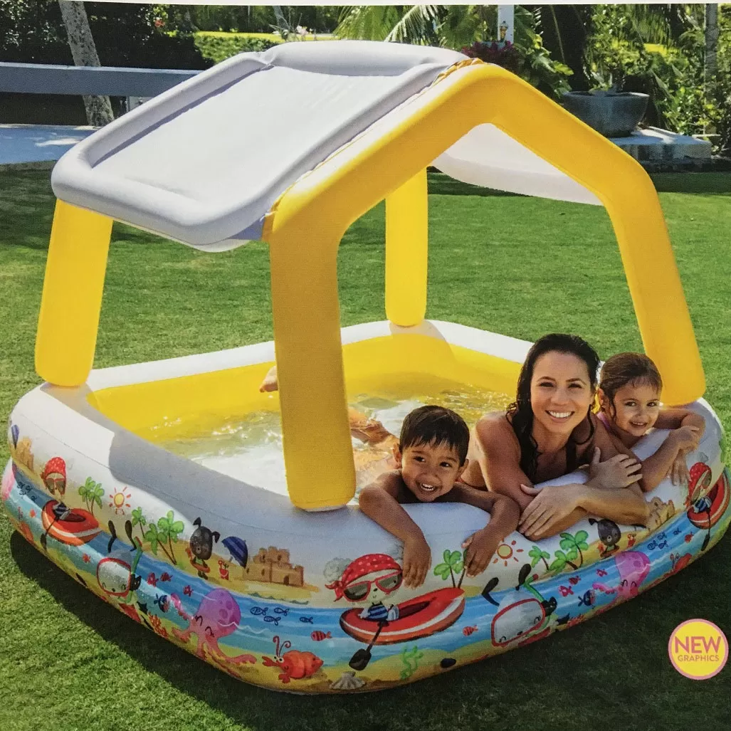 Dečiji bazen na naduvavanje sa krovom koji je otporan na UV zračenje. Dimenzije bazena su 157 x 157 x 122 cm, a zapremina je približno 295 litara vode. Krov je moguće skinuti, a bazen je namenjen za starije od 2 godine...