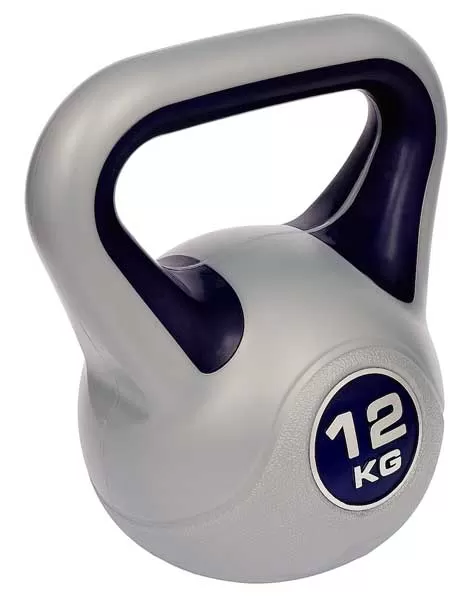 Kettlebell 12 kg, za aerobne vežbe i oblikovanje celog tela. Punjen je kombinacijom metalnih opiljaka i betona.