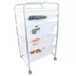 Praktična pokretna polica sa korpama i točkićima za lakše pomeranje, neophodna za domaćinstvo. Štedi prostor, pogodna je za upotrebu u kuhinji, ostavi, kupatilu... Četiri točka omogućavaju da se polica lako kontroliše i kreće u svim smerovima.