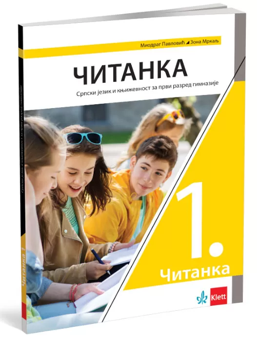 Čitanka za prvi razred gimnazije izdavača Klett. Autori: Miodrag Pavlović, Zona Mrkalj