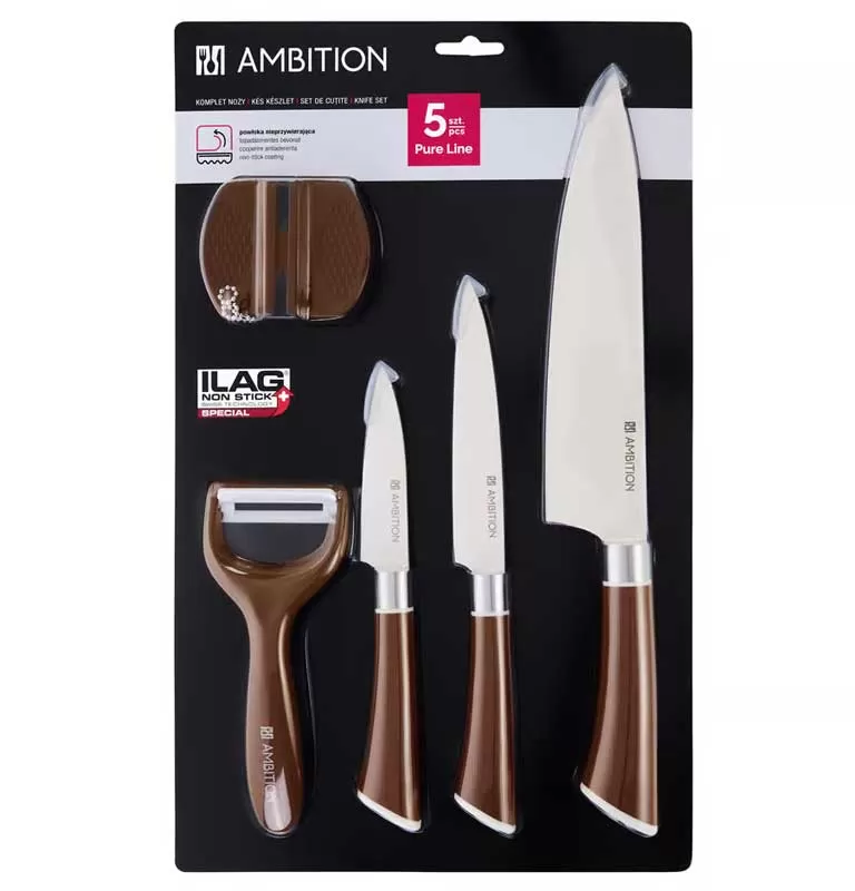 Komplet kuhinjskih noževa sa oštračem i ljuštilicom Ambition Pure Line 20358