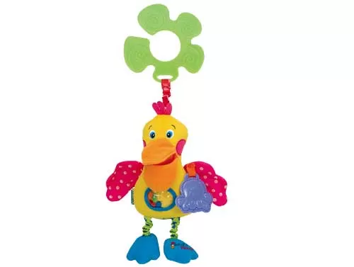 Igračka ima gumene delove koji bebi služe kao glodalica u fazi nicanja zubića