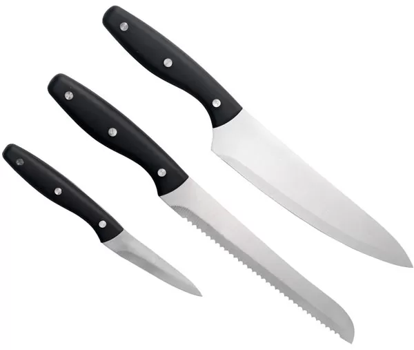 U setu se nalaze tri noža, kuhinjski, za hleb i za seckanje