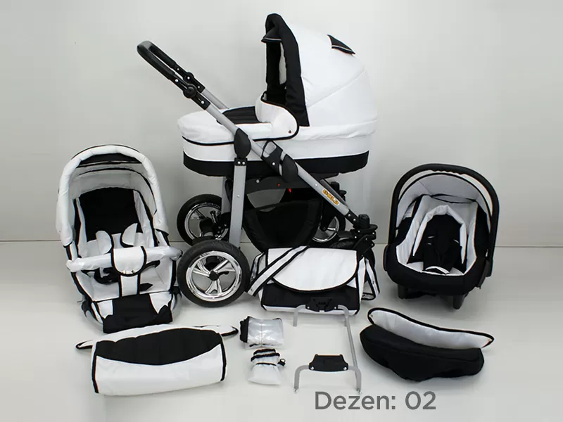 3u1 uključuje: Ram, kolevka, sportski deo, auto sedište, zimske navlake posebno za svaki deo, mamina torba, mreža protiv insekta, zaštita za kišu