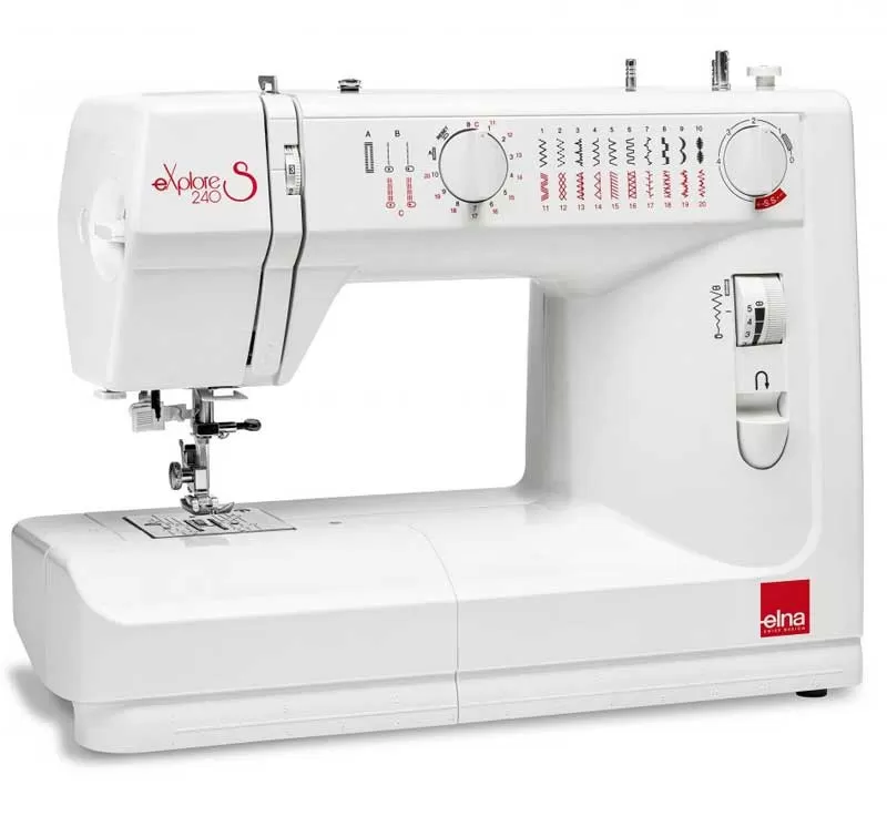 Šivaća mašina 240S eXplore namenjena je radu sa modernim, rastezljivim i tankim materijalima, postavama i sl. Ima vrlo jednostavno postavljanje ili izbor boda, podesivu dužinu i širinu svih bodova, što vam omogućuje prilagođavanje različitim materijalima.